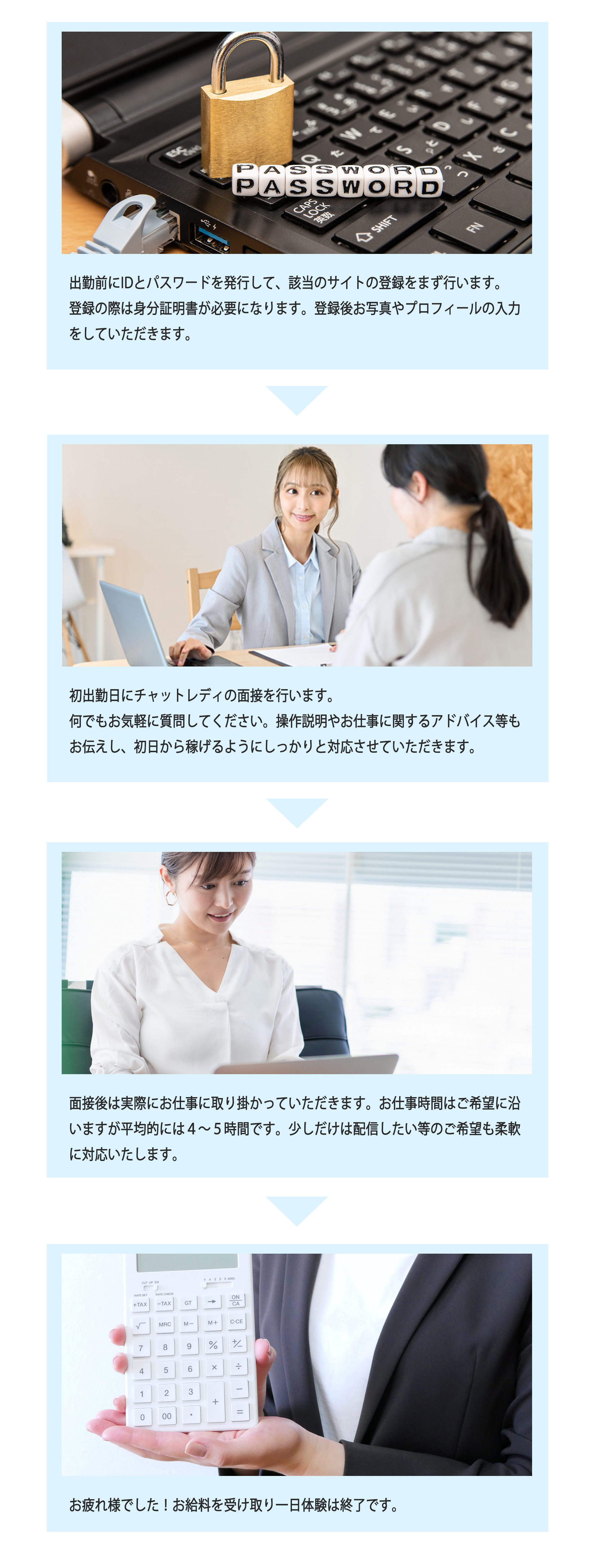 登録からお給料受け渡しまでの流れ